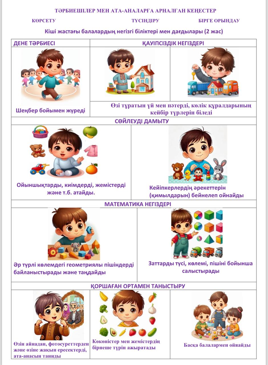 Үлгілік оқу бағдарламасы бойынша 2 жастағы балалардың игеретін дағдылары